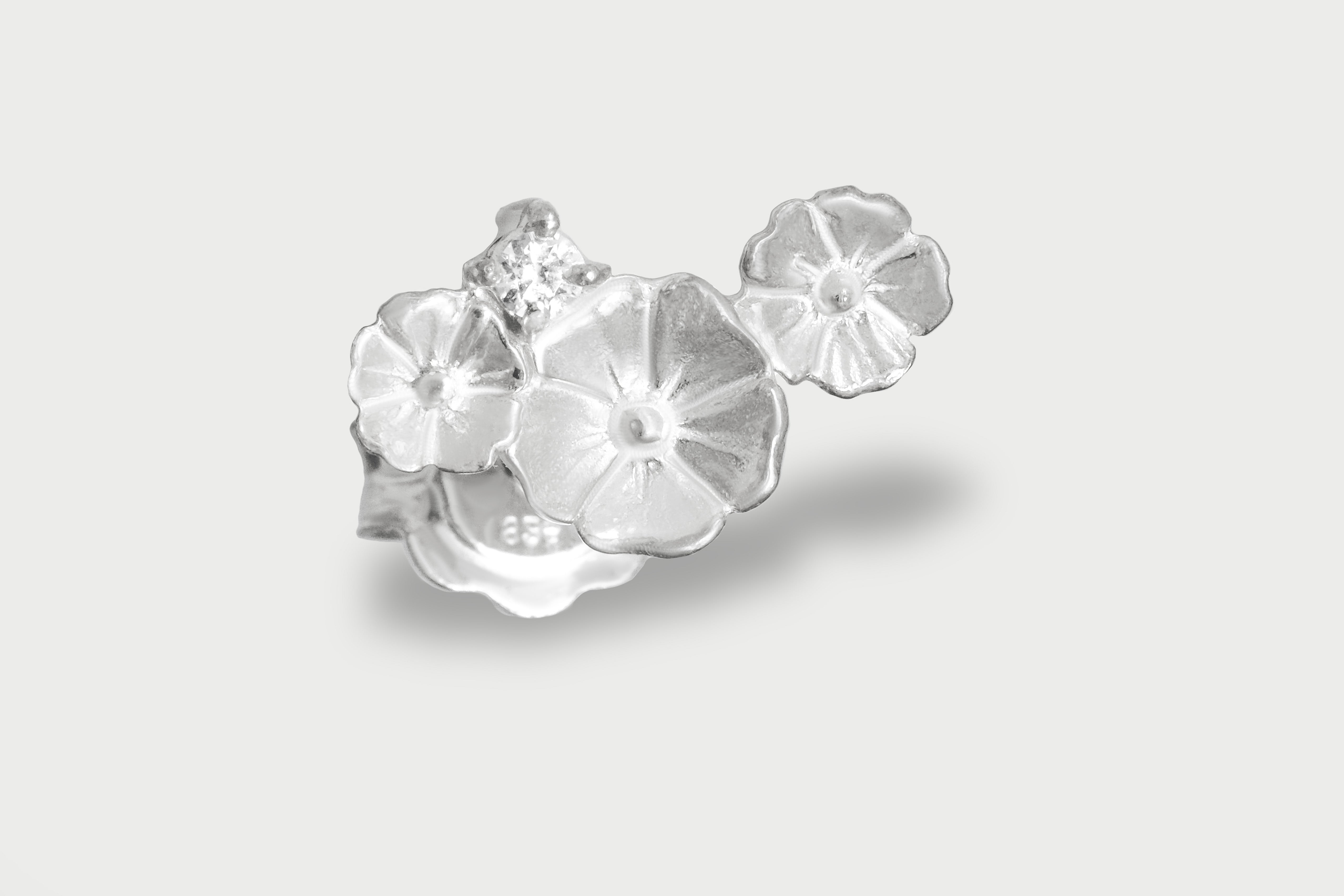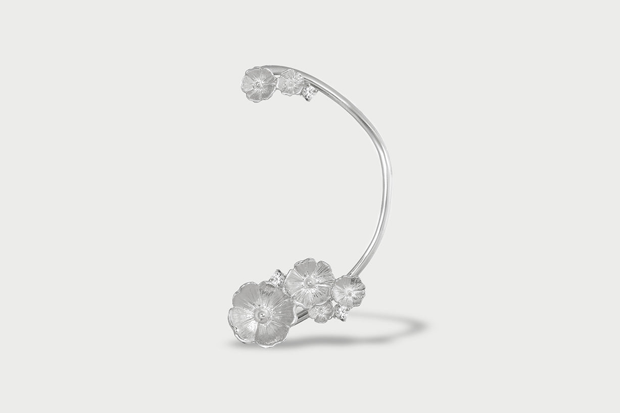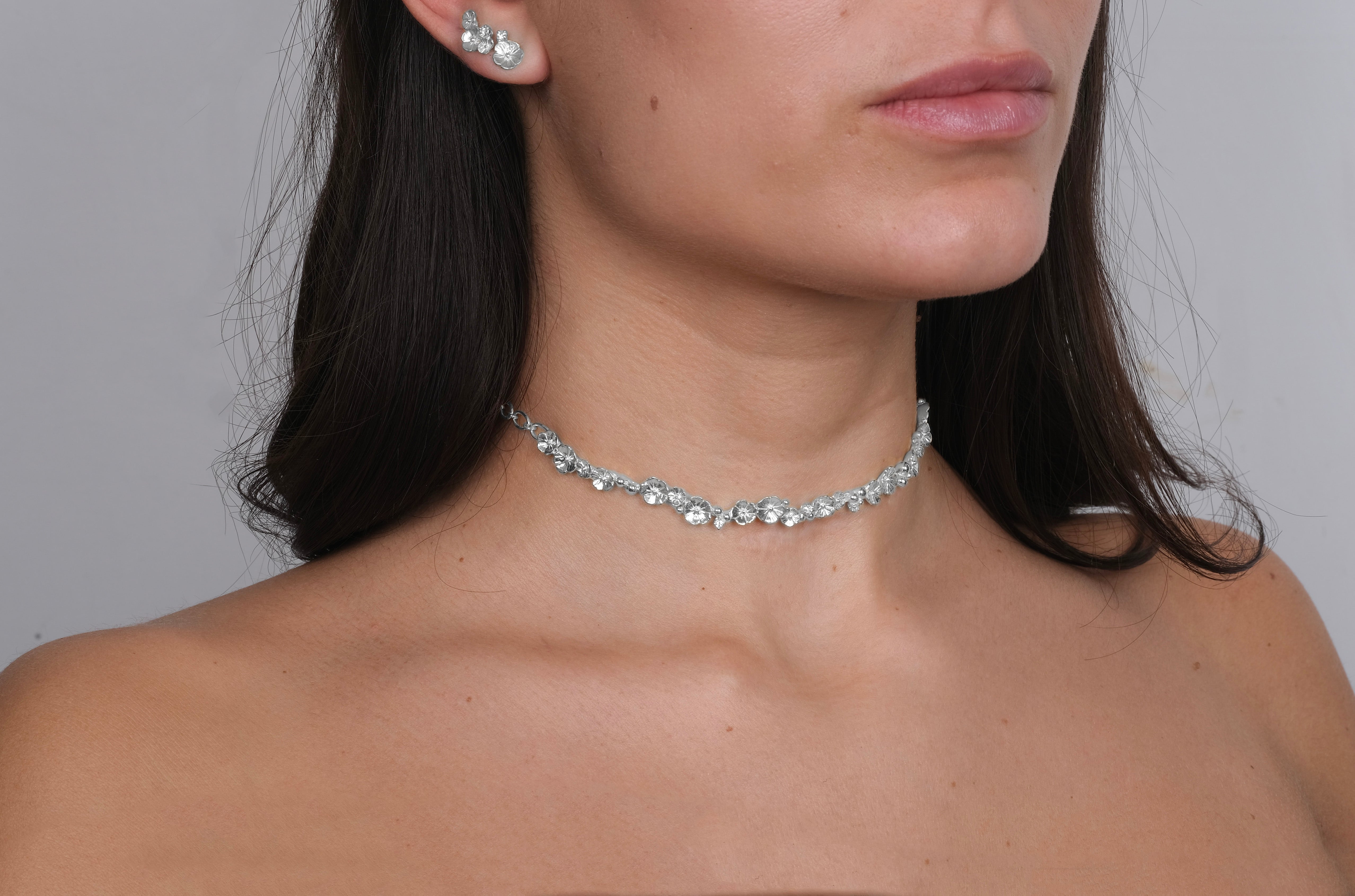 Anelli, orecchini con fiori, choker in argento, ear cuff e collane: ogni gioiello della collezione Altea è impreziosito da zirconi bianchi di altissima qualità, punti luce che esaltano la forma dei petali e donano una brillantezza sofisticata e senza tempo.