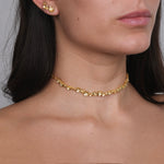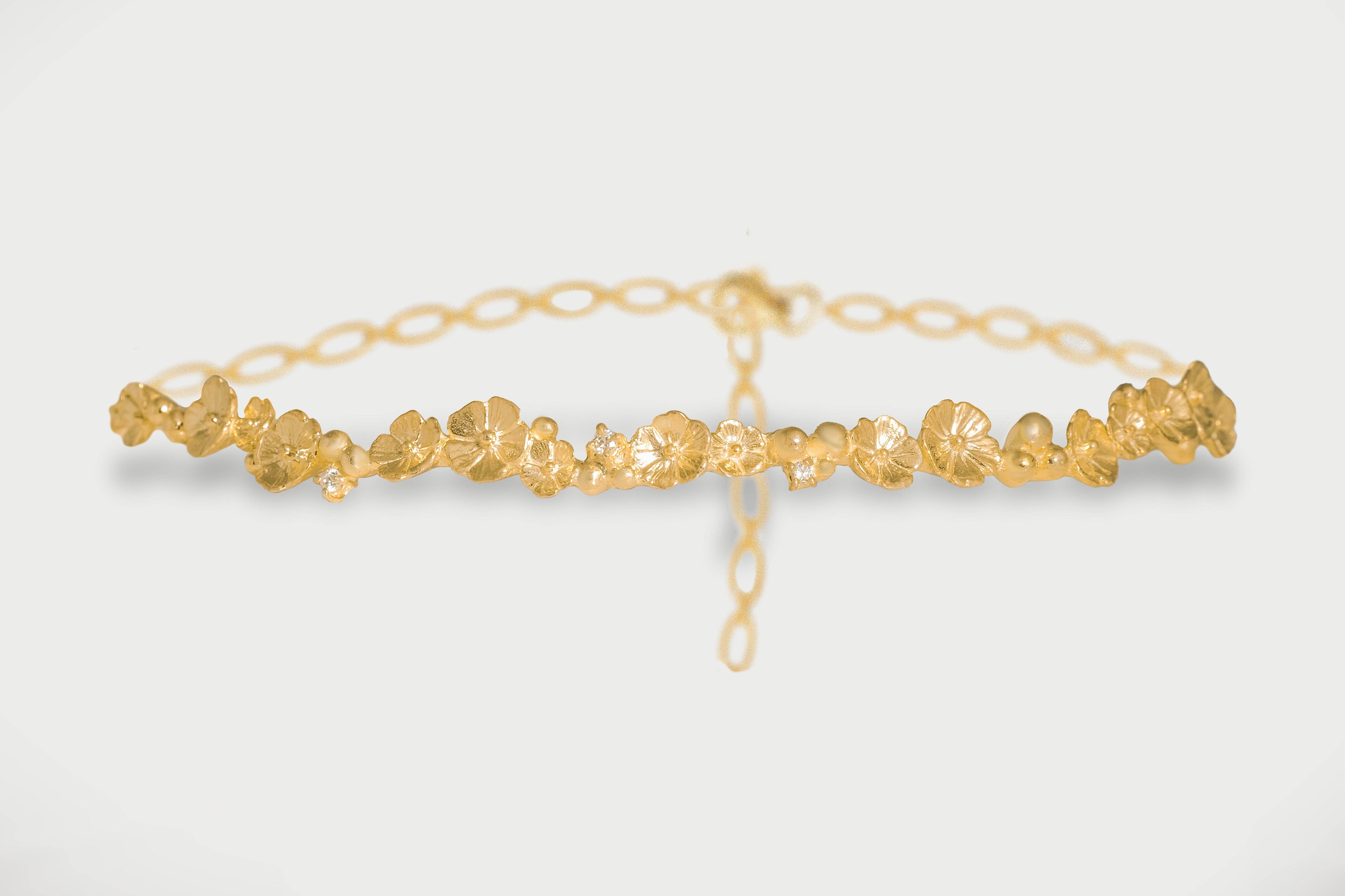 Choker con una composizione di fiori realizzata interamente a mano in argento 925 tramite la tecnica della fusione a cera persa.