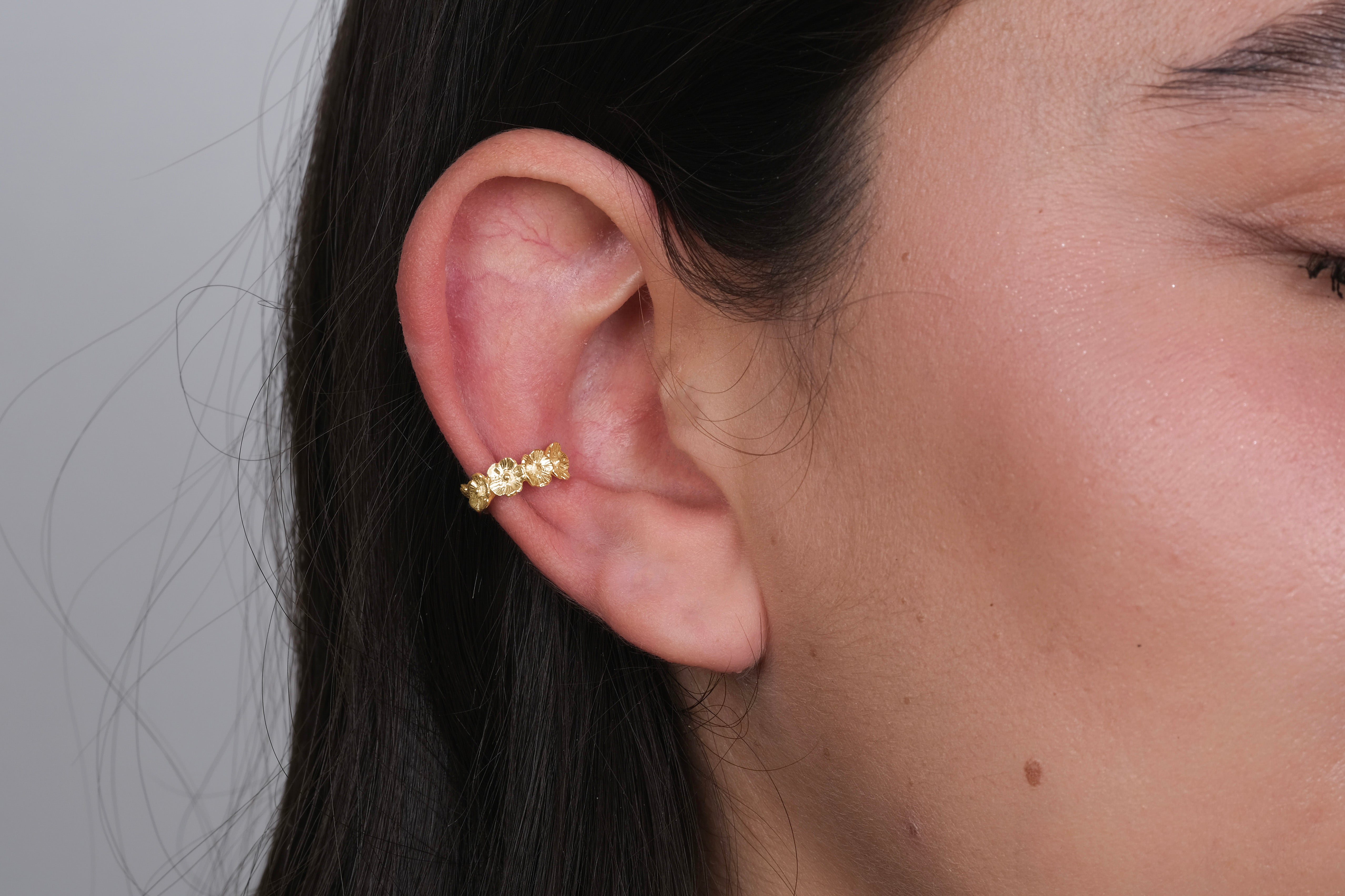 Ear Cuff Altea una composizione di fiori in argento 925, realizzato interamente a mano tramite un processo chiamato fusione a cera persa.