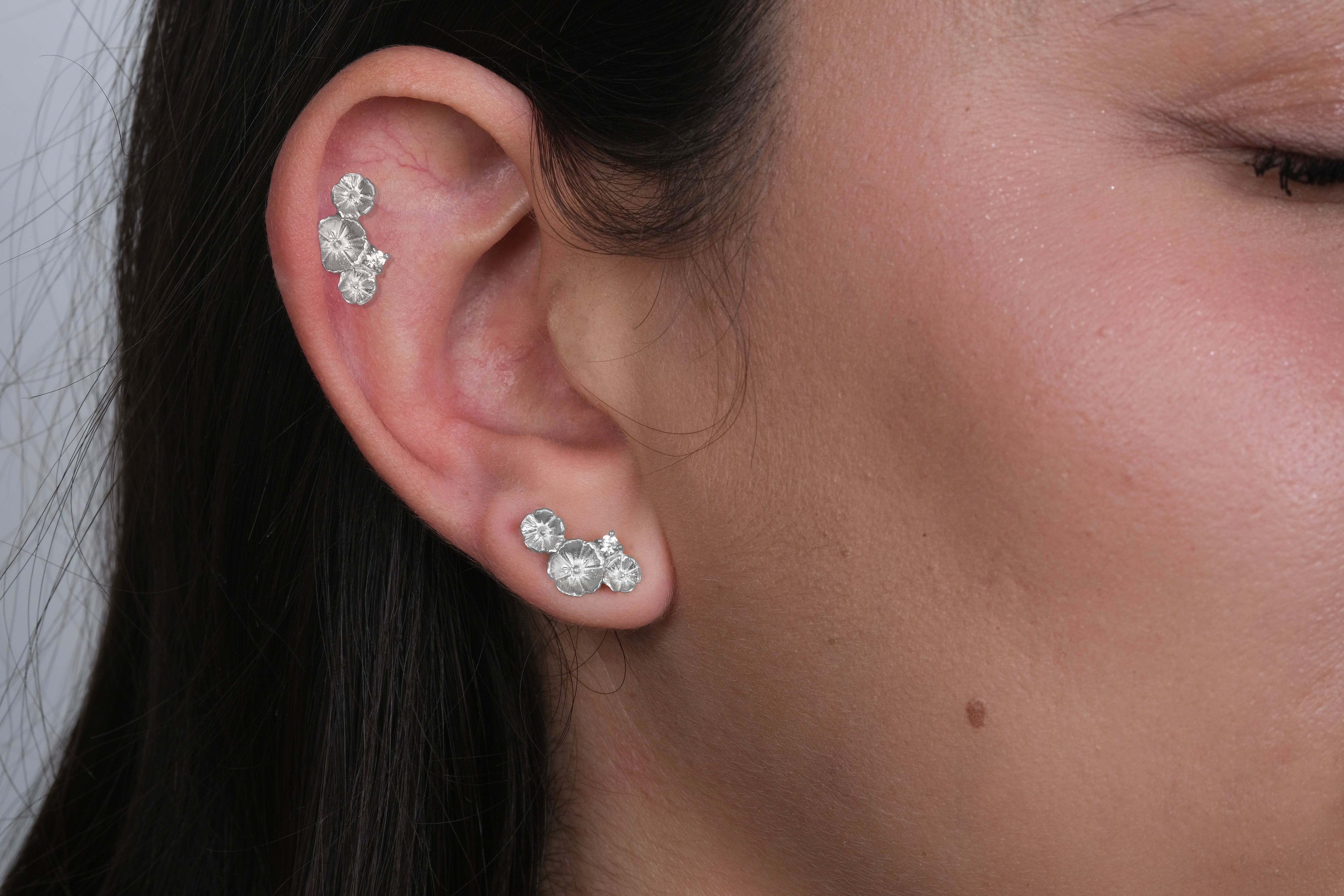 L'orecchino Altea, composto da una splendida composizioni di fiori, realizzato a mano in argento 925 tramite la tecnica della fusione a cera persa.